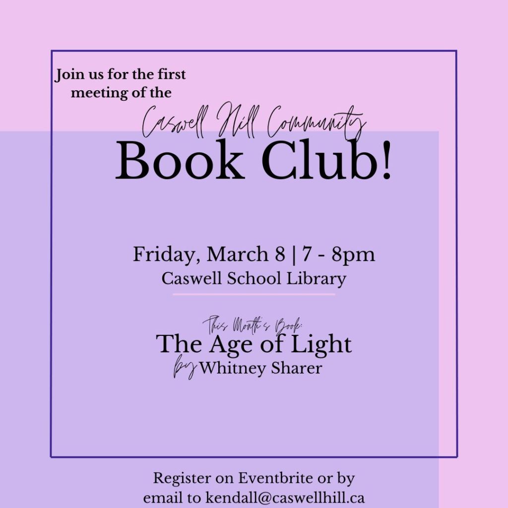 Welcome to the inaugural meeting of the Caswell Hill Community Book Club! We will meet monthly throughout the school year to discuss a book and choose the next one. Registration is on a month-by-month basis, but we hope you’ll come to more than one! This month, we are reading The Age of Light by Whitney Scharer.